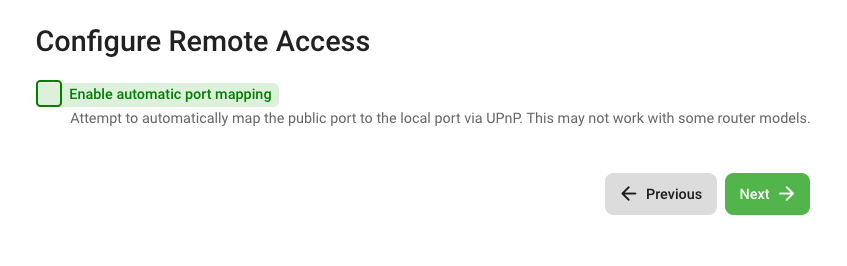Uncheck Enable automatic port mapping. Click Next.