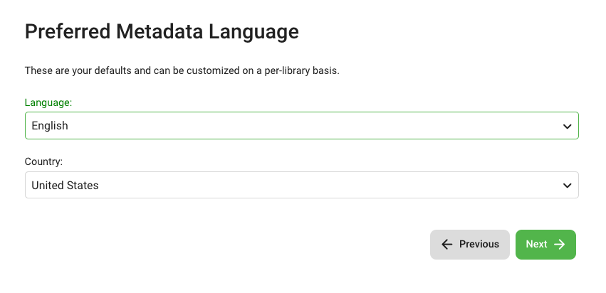 Select your Preferred Metadata Language and Country (