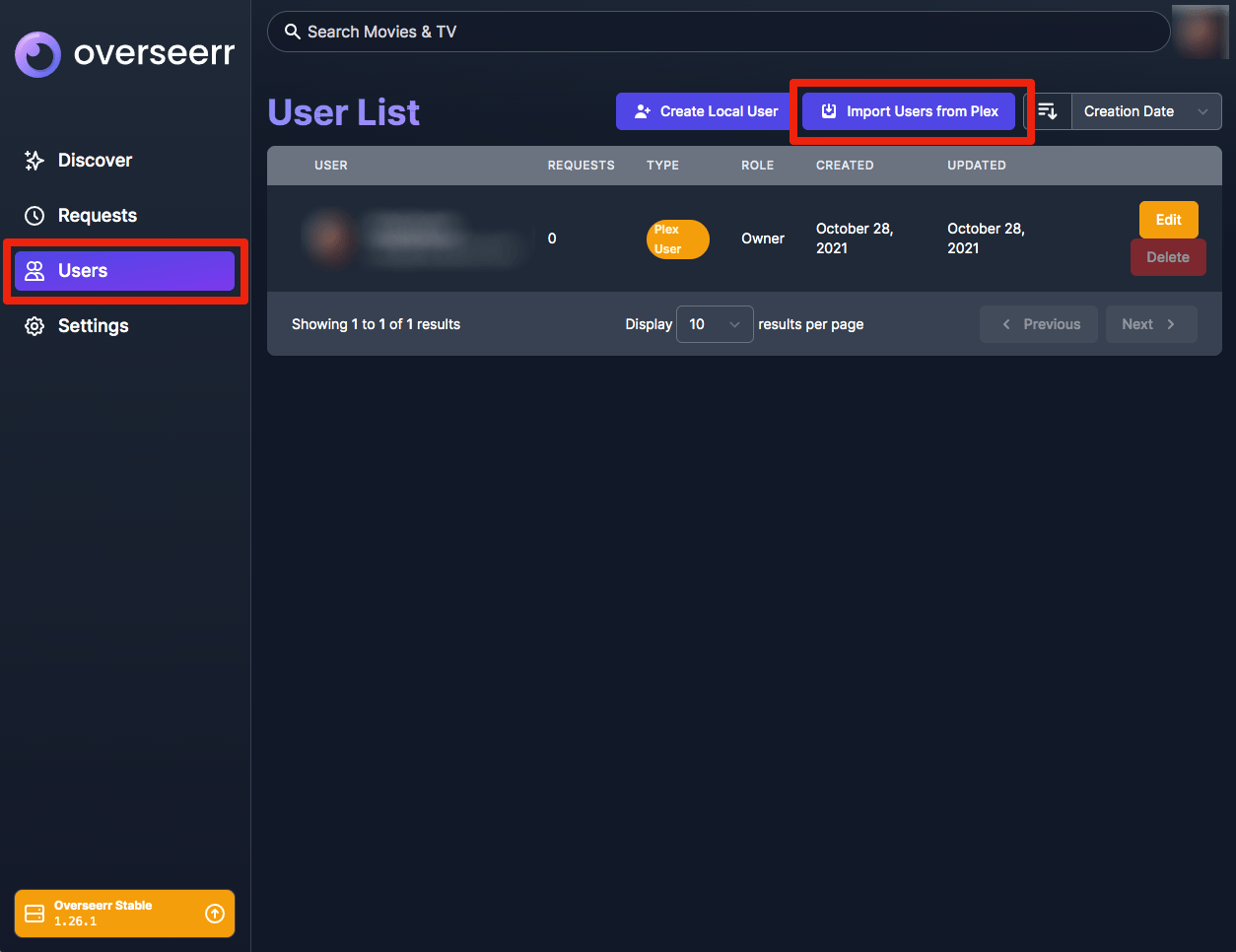 - Click "Users" on the left, then "Import Users From Plex"