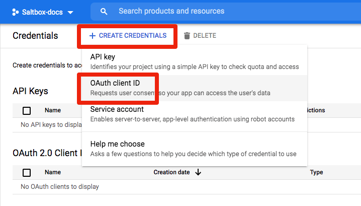 Later on, I'm going to assume you put it on the saltbox server in /opt/sa/ and named it project-creds.json.